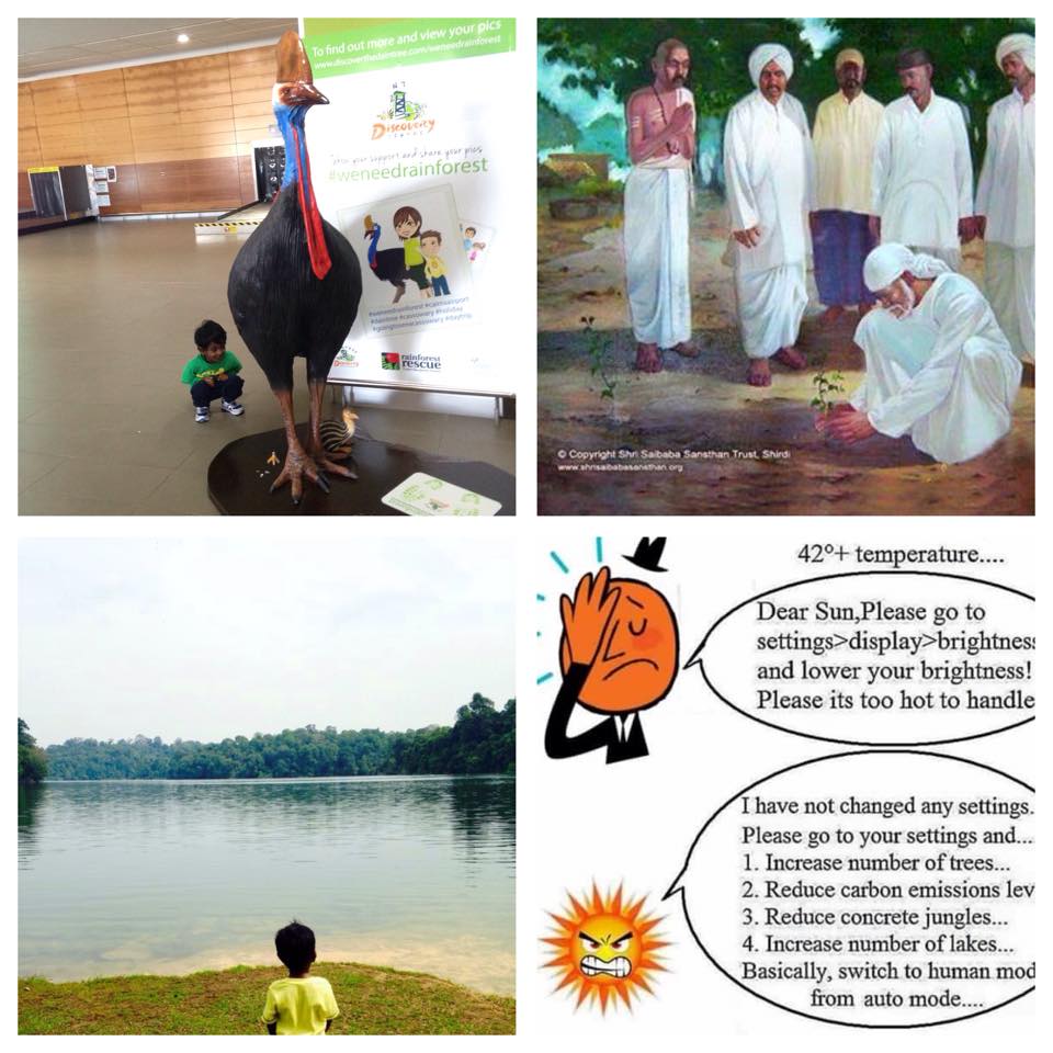 Sai’s weekend outings are not to the play area but to treks in MacRitchie and trails on Sungei Buloh or to the beach where he gets to beat the waves and we take him to new countries or places where he sees more of nature and wildlife. We don’t buy him unnecessary things even if he throws tantrums, we don’t spare him if he takes things for granted or wastes them, hoping he will grow up with basic environmental awareness and social responsibility.