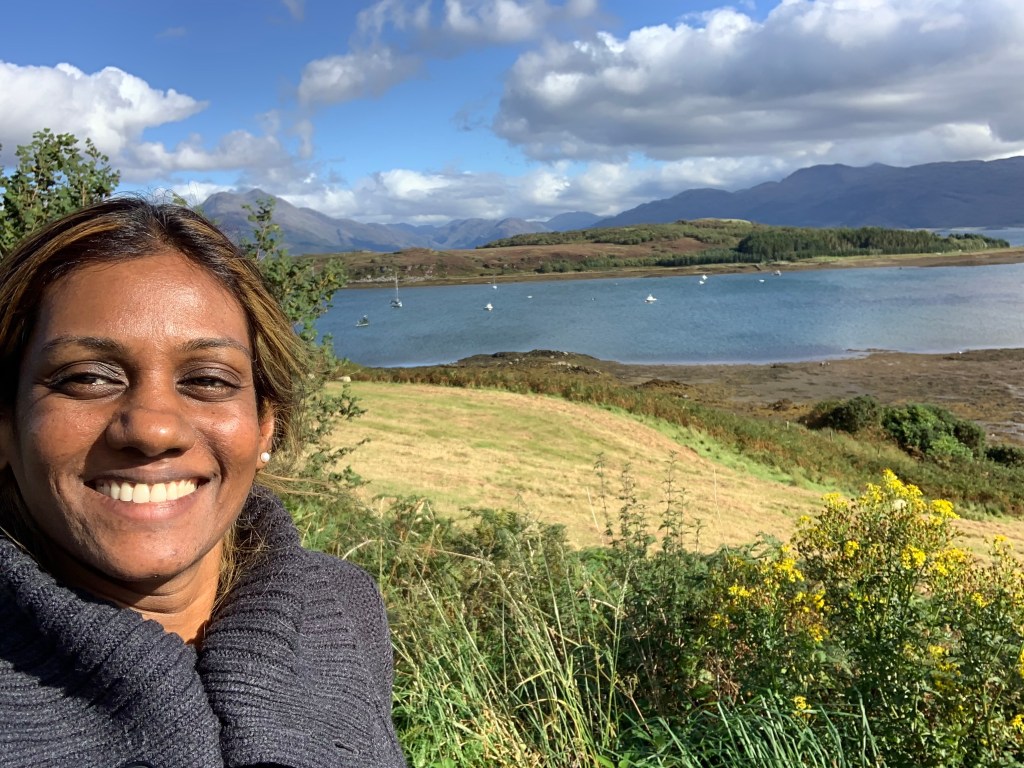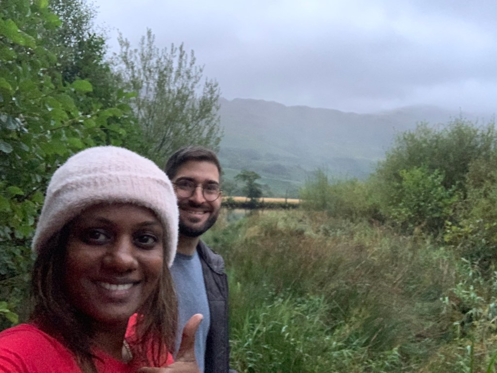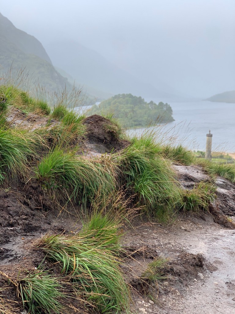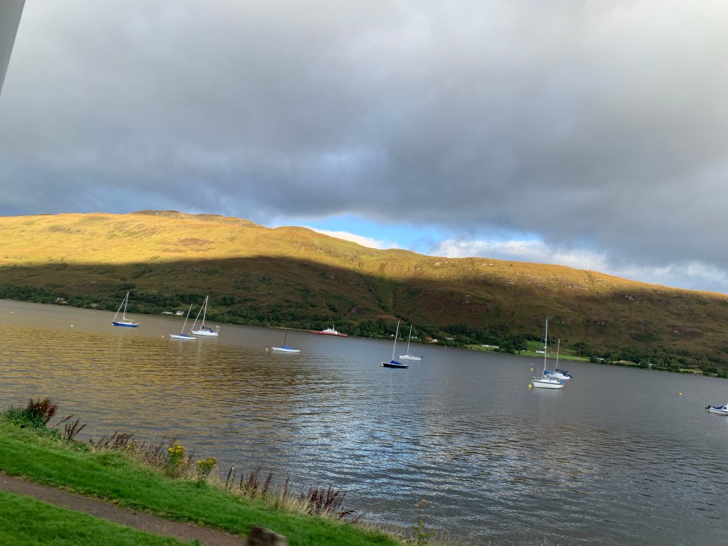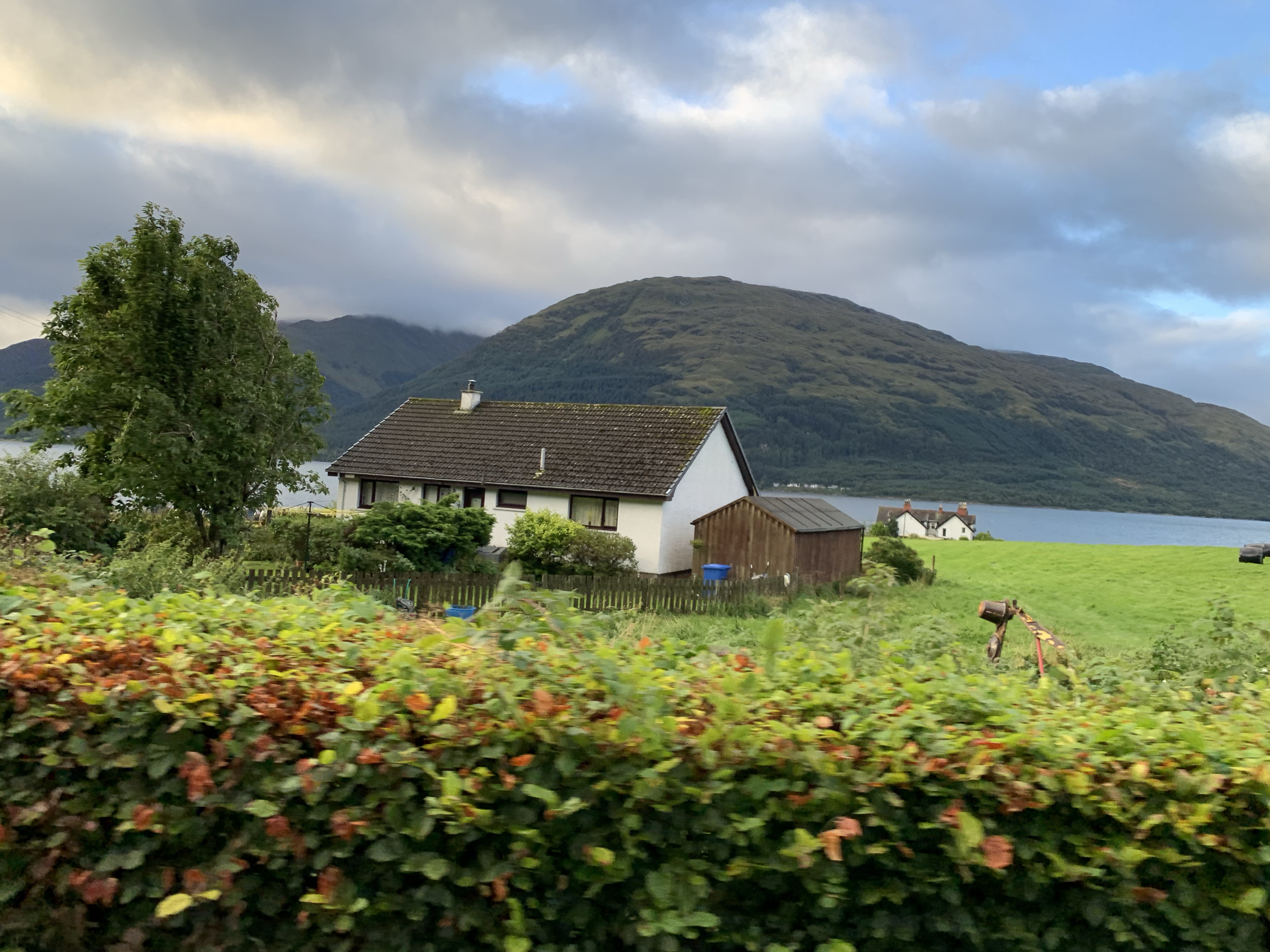 Collected our RV from Freedom Motorhomes in Langbank, Glasgow where the thoughtful owner, Dave McKinnon gave us an hour’s worth of induction to get us acquainted with the vehicle and processes. Dave is a local, well travelled himself, who was generous with his suggestions to make the best of our 5 days! The damp weather did not dampen our spirits as we bade him goodbye and set off on our exciting drive towards the Western Highlands! The first town we visited was Dumbarton, where we stopped to stock up our little kitchen and fridge for the next 5 days. It was a tall order to find a restaurant that was open at around 8pm. Though some were open, they didn’t seem keen to take on guests even when they had free seats! So off we went restaurant hopping around Loch Lomond in the rain, only to be turned away 🙂 Thanks to our shopping earlier, Chris and I decided that it’s best to turn to our own fridge for the night! So we parked somewhere, hurriedly prepared a quick meal of soup, crackers and cheese, filled our tummies and drove on towards our first camping destination – Ardlui. It was around 12:30am when we reached a quiet spot along the River Falloch and halted for the night! It was still pouring and pitch dark! I stepped out with an umbrella and realised what a bad idea it was! Chris couldn’t wait to crash after that long drive, so off he went to his rear end of the RV. I was more than happy to climb up the ladder to my cozy corner of the vehicle on the front end, feeling like a princess to sleep on a high bed, with a nice rooftop window and a privacy curtain 🙂 I slept to the lullaby of the pelting rains, only to be woken up 6 hours later by chirping birds! We took an early morning walk around our camping spot and found a fenced, uninhabited cottage with a backyard leading to some swamps! We were all too eager to explore the swampy land and that’s when it hit us, we forgot about the MIDGE population which love early mornings and swamplands!!! Off we ran to the safety of our RV before any major damage to get ready for Day 2!!!