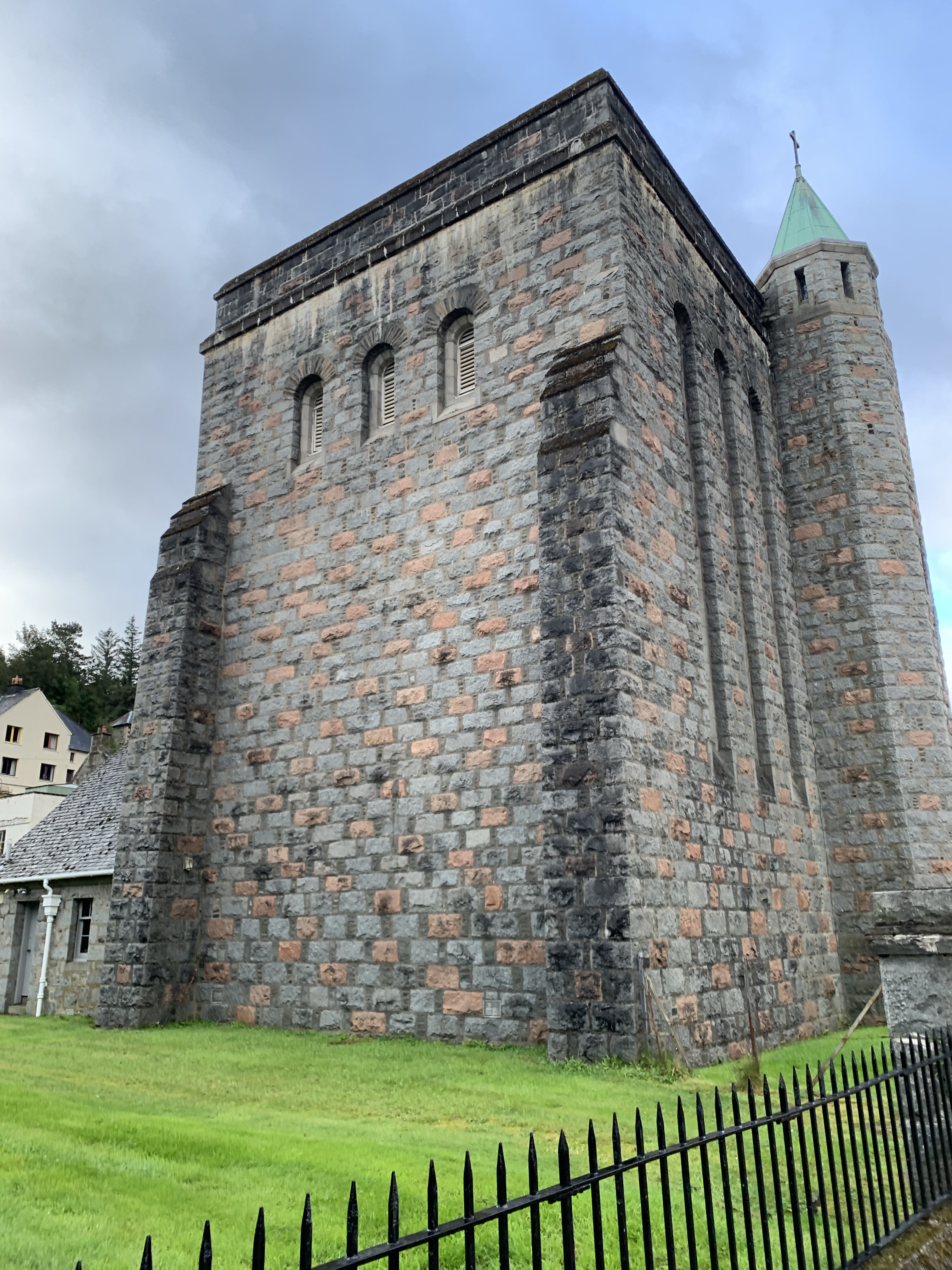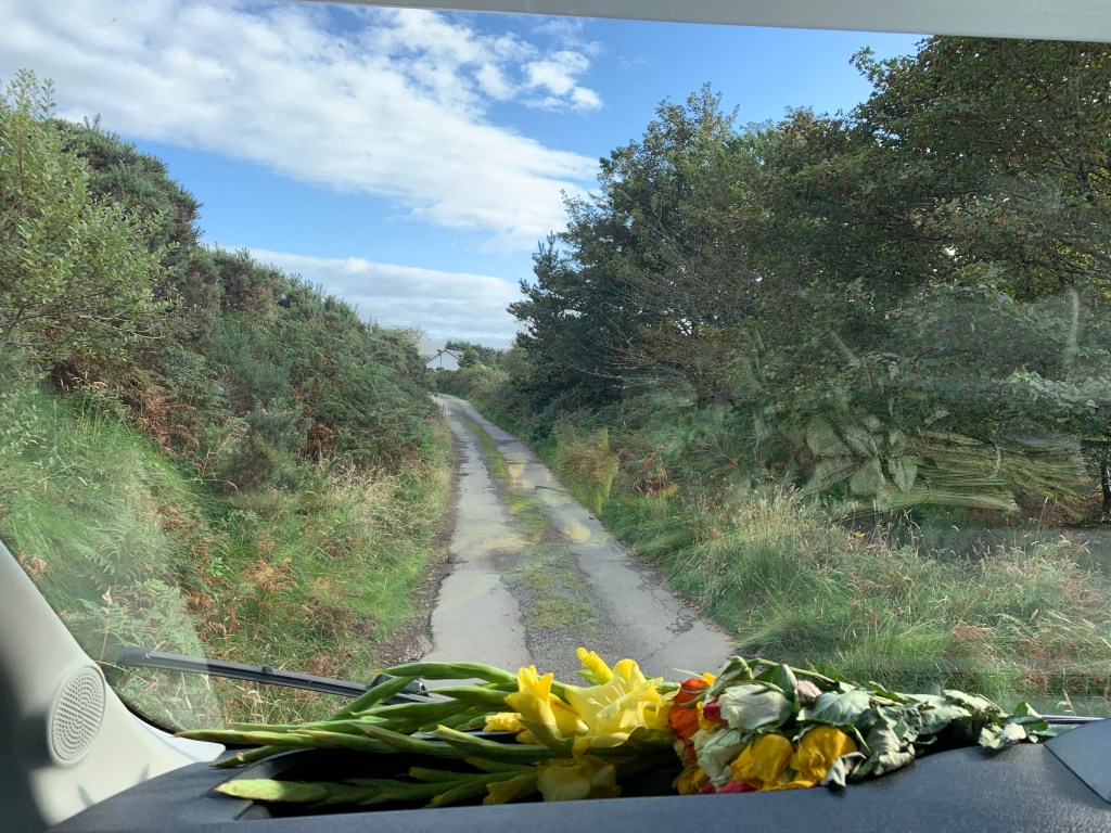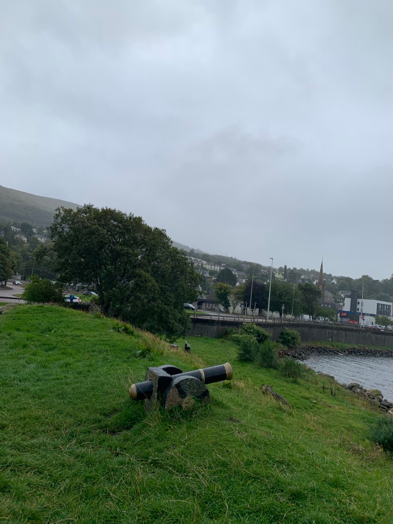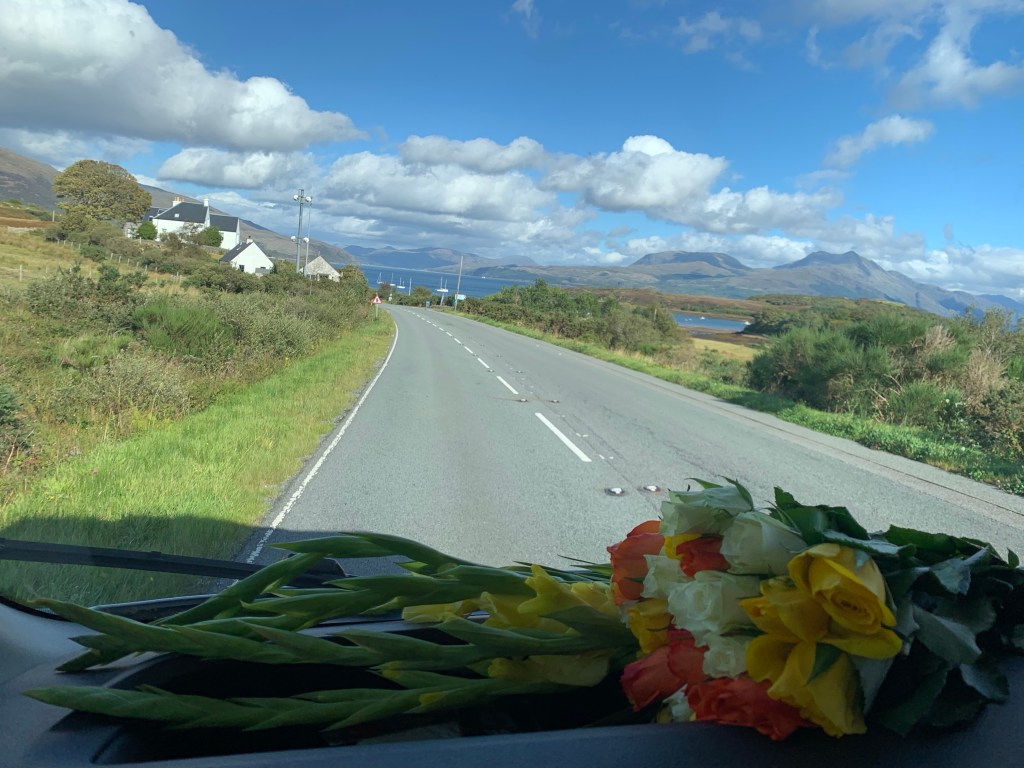After a quick RV breakfast, we started driving from Ardlui towards the historic town of Fort William where Chris wanted to buy some Highland sweaters. We parked at Glen Nevis and while Chris was busy at the Highland Center store, I walked around the little town and bought myself my favourite yellow daffodils and some beautiful roses! The morning sun came out and showed how beautiful the mountains around Loch Linnhe really were! We took some nice pics in the sunshine at the Old Fort, climbed atop the fort walls which are still standing and got some of the best views of the shoreline below.