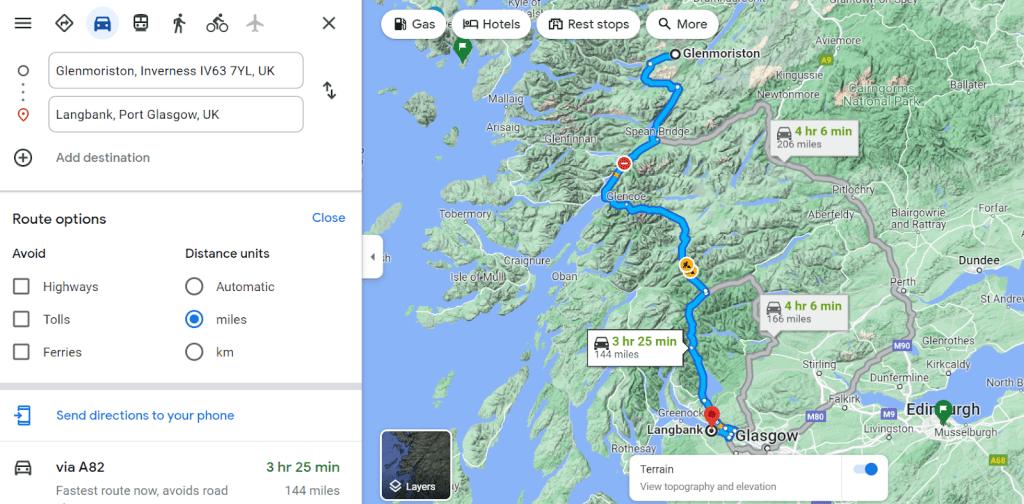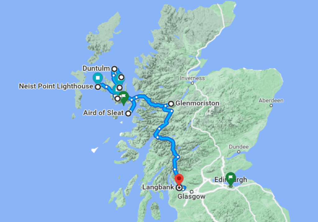 We awoke early on Day 5 which was our last day on the trip. We had parked in Glenmoriston near Inverness and had another 145 miles to drive to get to Glasgow! We had to handover the vehicle by 11am.
