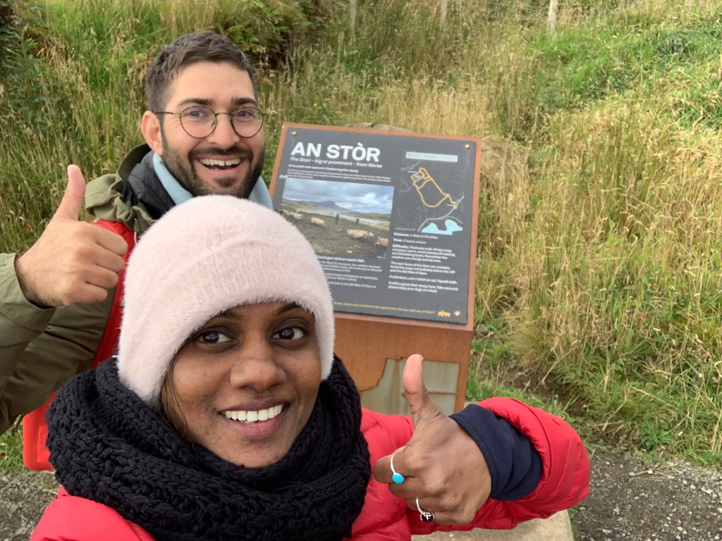 We decided to trek to the Old Man of Storr and headed back towards Storr. Once there we parked comfortably in the RV area where they had all the amenities we needed. At 9am, we started our trek up the Storr which is at almost 1000 metres above sea level.