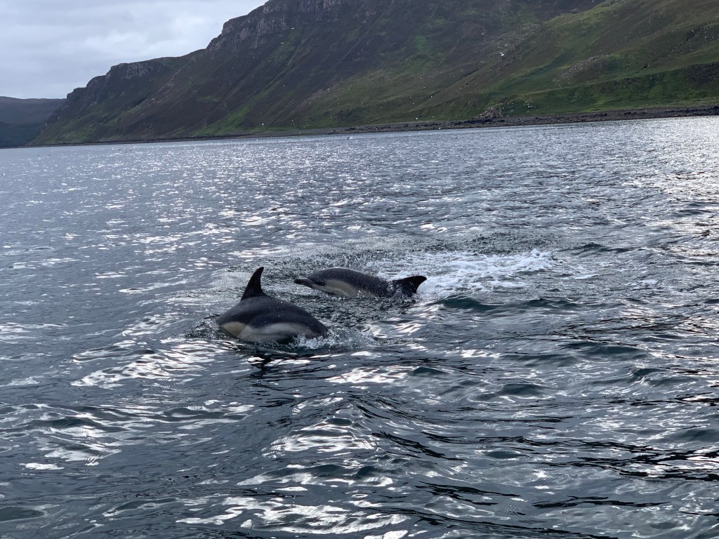 I save the best for the last! WILD DOLPHINS!!! What a joy to see those beautiful wild dolphins all around us on our 2 hour journey in the Portree Bay Area!!! They swam around us, under us, beside us and made every possible effort to engage us!