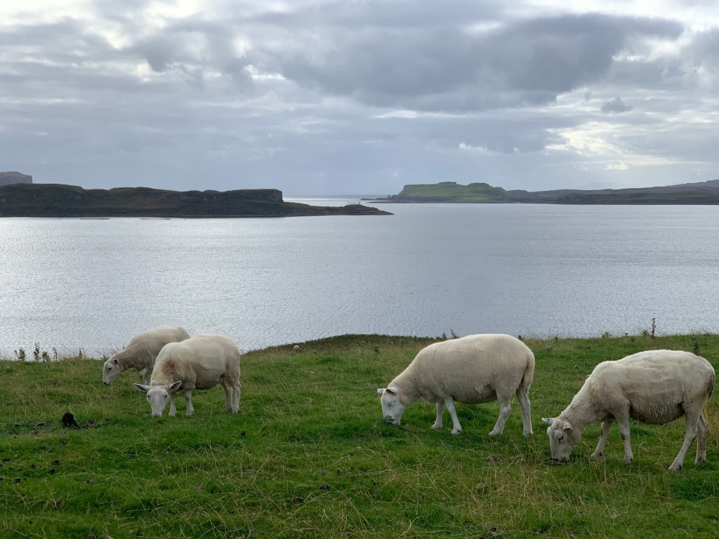 We crossed the sea to some gusty winds and bitter rains into the Isle of Skye! As we stepped onto Armadale on the southern Sleat Peninsula, the sun came out and showed us another level of beauty of the landscape with blue skies. We drove on to the Aird of Sleat, which is the southern tip of Skye. With no restaurants that were willing to take us in, we resorted to making another quick meal in the motorhome!